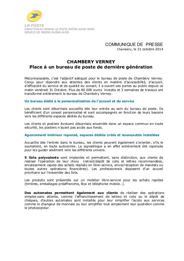 2014 10 31 Cp La Poste 73 Reouverture Bp Chambery Verney